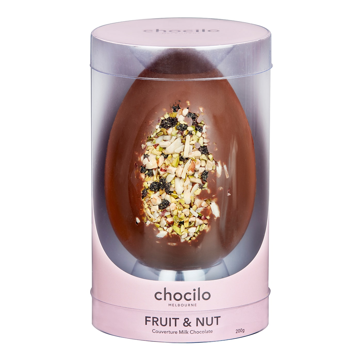 Introducing our NEW 200g decadent Fruit & Nut milk chocolate Easter egg, packaged in a gift cylinder. Made with smooth couverture milk chocolate.